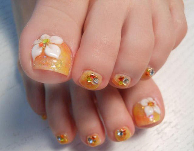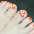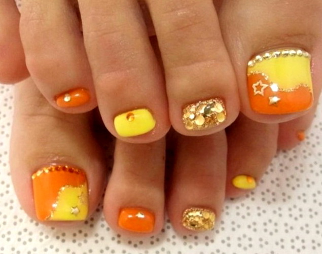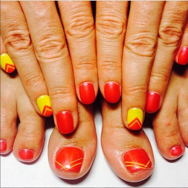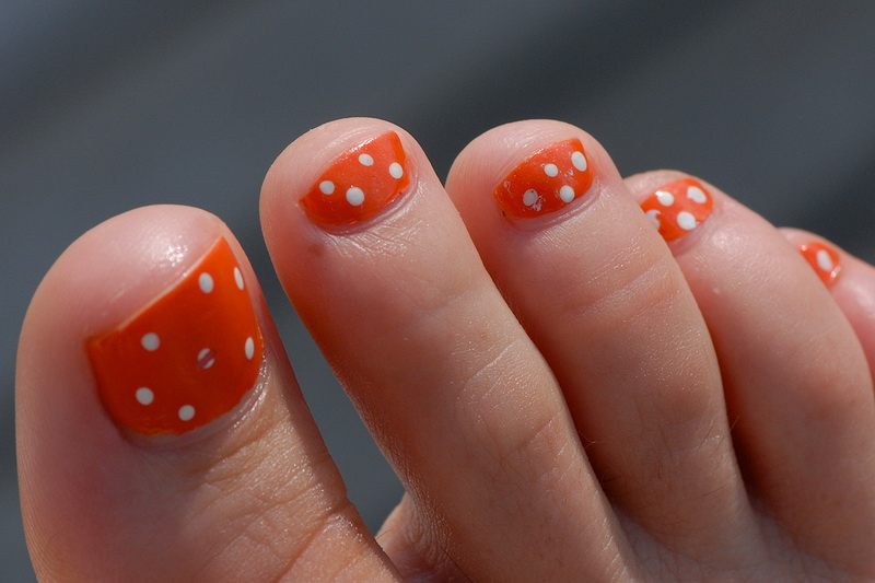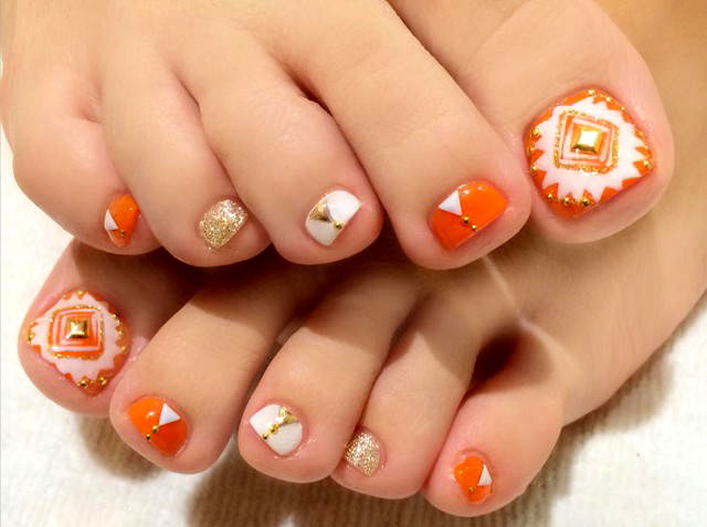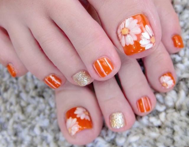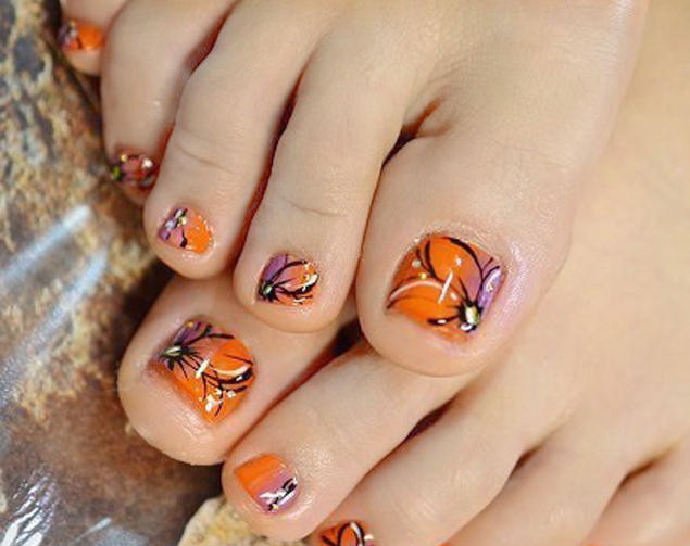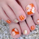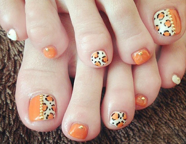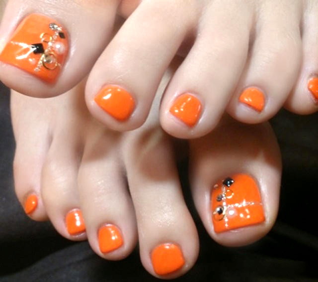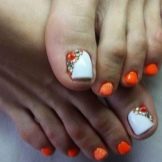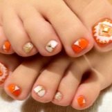 Tất nhiên, đây không phải là tất cả các thiết kế thiết kế có thể được sử dụng để tạo ra một móng chân trong màu cam. Điều chính là không làm quá nó với kim cương, hoa và trang trí.