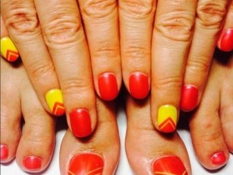 Để làm cho hình ảnh hoàn chỉnh và súc tích, móng tay trên cánh tay và chân có thể được sơn trong cùng một sắc thái và bổ sung với một thiết kế đẹp. Kỹ thuật này được coi là thiết thực và rất phổ biến.