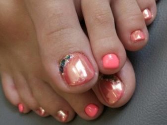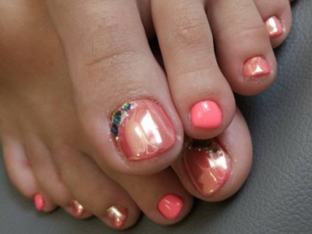 - Thạch, bouillons và sỏi. Quýt đơn điệu hoặc móng chân san hô có thể được pha loãng mà không gặp khó khăn khi sử dụng pha lê Swarovski rực rỡ hoặc sử dụng kỹ thuật đúc phổ biến, được thực hiện bằng cách sử dụng sơn gel. Trên chân của bàn chân, bạn có thể đặt một loạt các bản vẽ với đá và kim cương hoặc bổ sung chúng bằng vẽ tay trang trí. Nếu chúng ta đang nói về nước dùng nhỏ, thì họ thường ngủ toàn bộ móng.