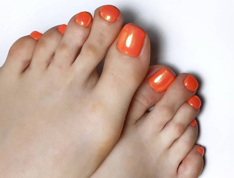 Màu cam gần như không bao giờ lỗi mốt, đặc biệt là khi đi bộ móng chân mùa hè. Màu này đơn giản là không thể nhàm chán, vì nó lấp đầy điện tích của năng lượng xung quanh.