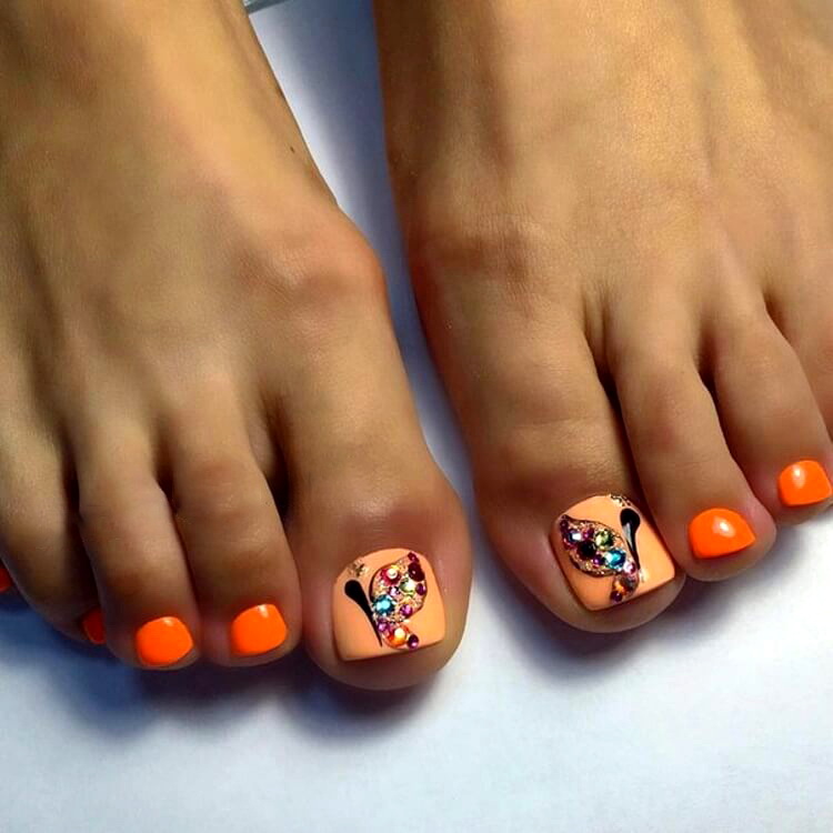 Móng chân màu cam: lời khuyên về việc lựa chọn và tạo ra một thiết kế