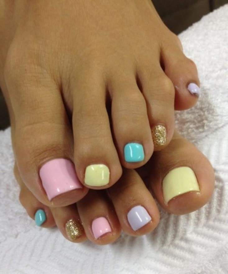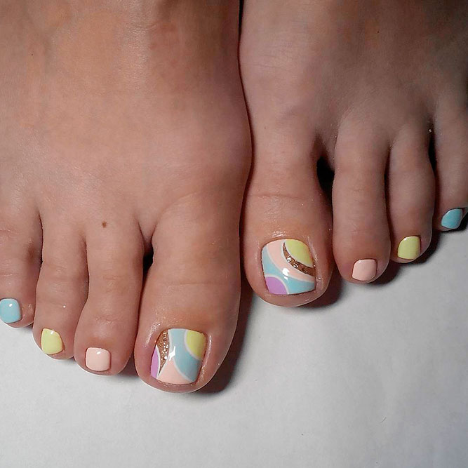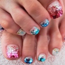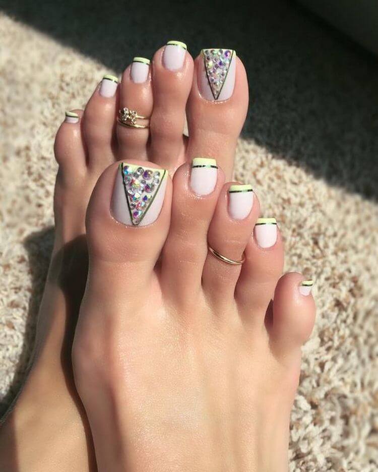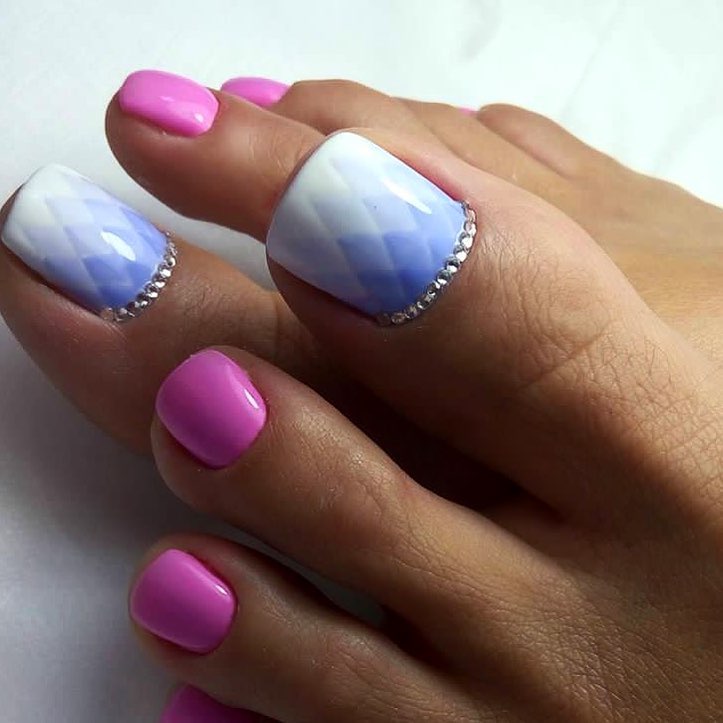 - Mỗi móng tay có thể được sơn bằng một màu khác nhau. Yếu tố thống nhất của móng chân sẽ là kim cương giả, giống hệt nhau về kích thước và tông màu.