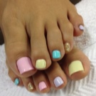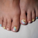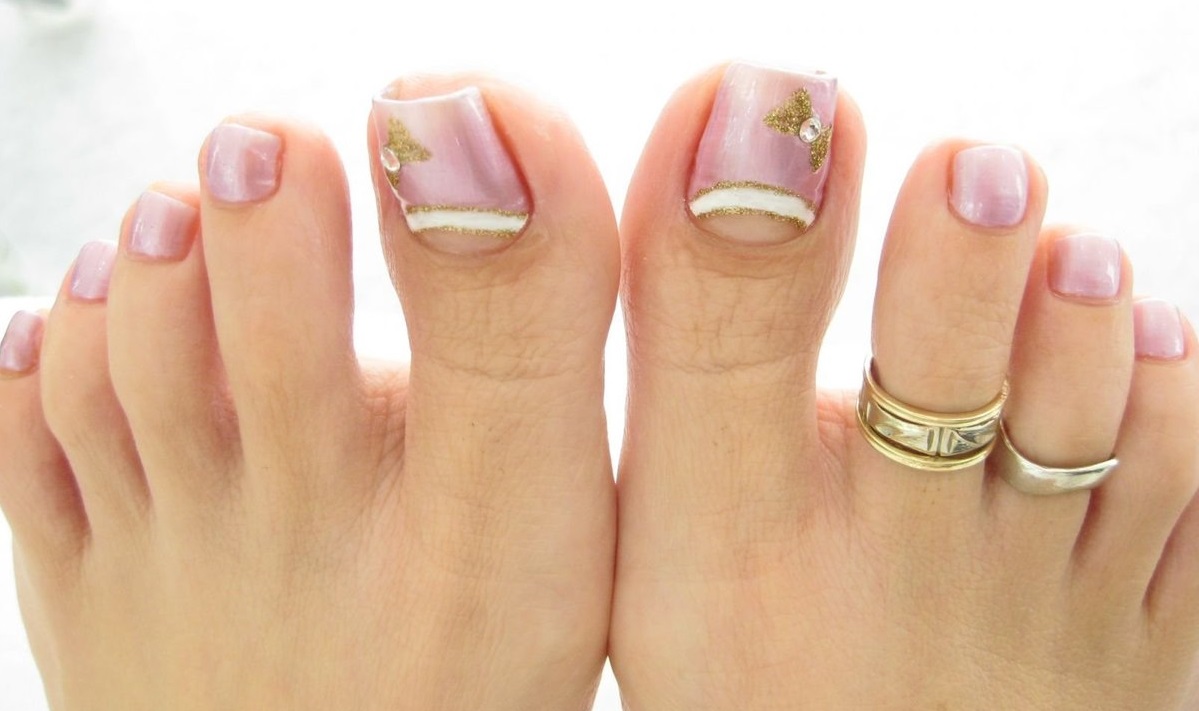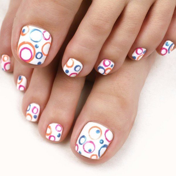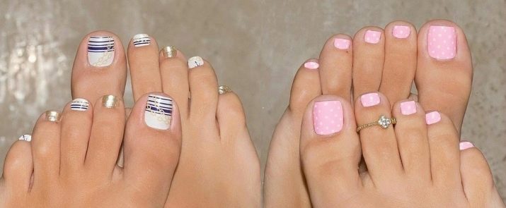 Thông thường móng chân được trang trí với hình ảnh của dưa hấu, kiwi, hoa, bờ biển, cây cọ, cung, trái tim, bướm. Mô hình hình học đang có nhu cầu: vòng tròn có kích thước khác nhau, dải, ren.