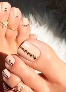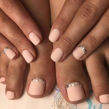 Trong tất cả các mùa, móng chân truyền thống được thực hiện trong một giai điệu sẽ có liên quan. Để hiện đại hóa tùy chọn thiết kế móng tay này, bạn có thể làm móng chân bằng kim cương hoặc với một mẫu trên ngón tay cái.