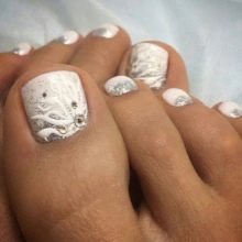 Trang trí móng tay màu trắng luôn có liên quan. Nó sẽ mang lại cho chủ sở hữu của sự thanh lịch và tinh tế. Màu pastel trong móng chân phổ biến hơn bao giờ hết. Tối thiểu long lanh, trang trí và màu sắc, nhấn mạnh vẻ đẹp tự nhiên của đôi chân.