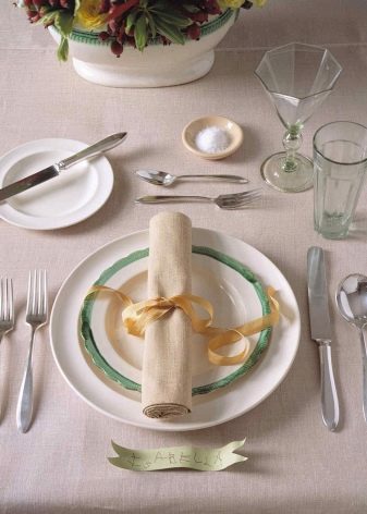 Những khó khăn lớn nhất phát sinh trong việc phân phối các thiết bị. Đây là giá trị ghi nhớ quy tắc cơ bản: trình tự vị trí của các thiết bị phản ánh thứ tự sử dụng của chúngdo đó, từ bên ngoài đĩa, đầu tiên cho khách sẽ là các thiết bị cho đồ ăn nhẹ hoặc bất kỳ món ăn nào khác được phục vụ trước. Các thiết bị luôn được phân phối xung quanh tấm cho khóa học chính. Nếu bạn nhớ quy tắc duy nhất này, bạn có thể tránh được nhiều tình huống khó xử khi đặt cài đặt bàn riêng cho bữa tối hoặc bất kỳ bữa ăn nào khác.