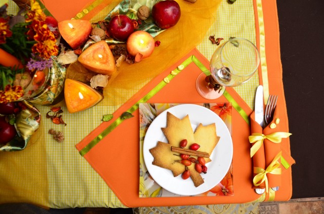 - Vào những ngày lễ mùa thu bàn được phục vụ với việc bổ sung đá bán quý, rau nhỏ theo mùa, xuất hiện dưới dạng phụ kiện. Các tác phẩm được bổ sung bởi màu sắc phù hợp.