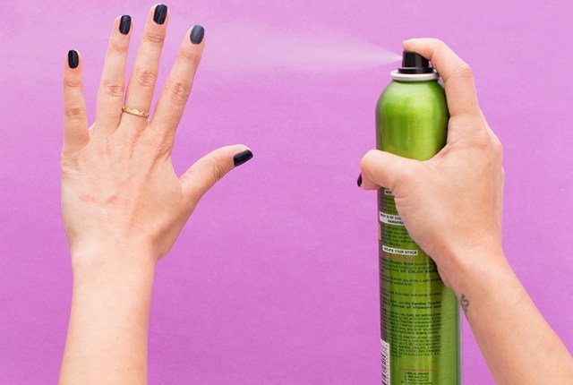 - Nếu ngôi nhà có keo xịt tóc phổ biến nhất, thì nó cũng có thể thay thế một công cụ đặc biệt. Lấy một miếng bông, ngâm nó với keo xịt tóc và xử lý từng móng. Phương pháp này giúp bạn dễ dàng loại bỏ lớp phủ khỏi móng, nhưng đáng để cực kỳ cẩn thận để không làm hại tay. Cần phải cố gắng để trong quá trình vecni không rơi trên da. Nếu điều này xảy ra, bạn nên rửa tay ngay bằng xà phòng và nước.