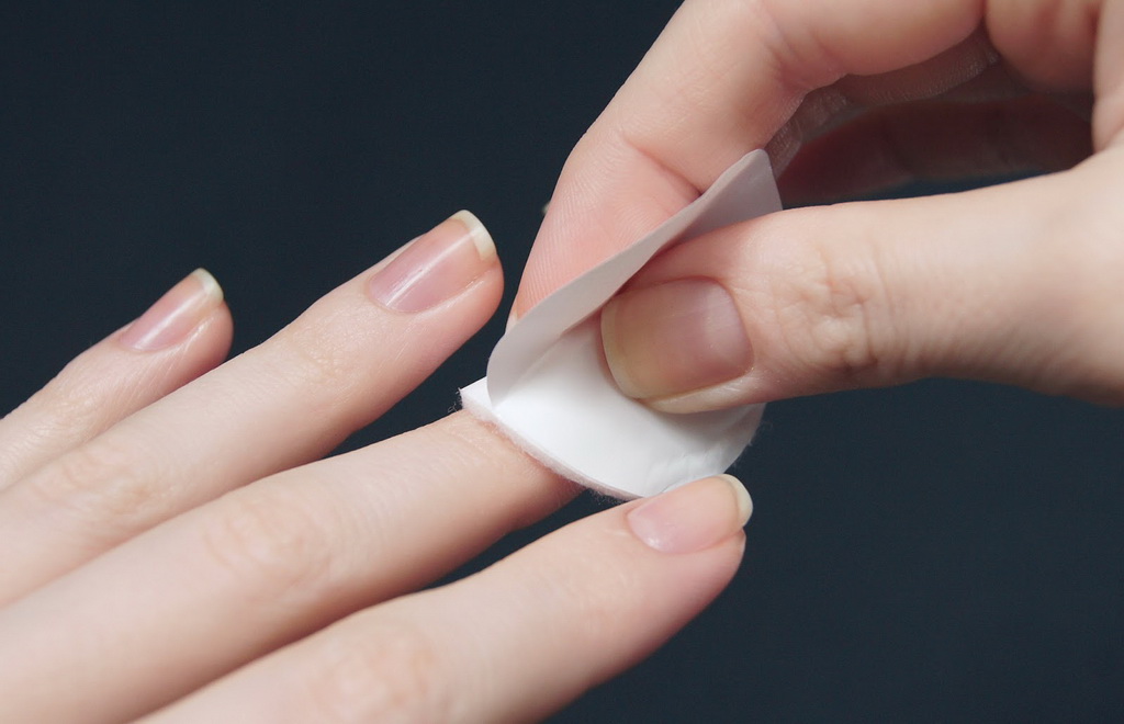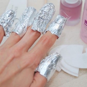- áp dụng một chất lỏng đặc biệt để loại bỏ chất đánh bóng gel trên bông gòn hoặc khăn ăn, bọc mỗi ngón tay bằng giấy bạc trong mười lăm phút;
