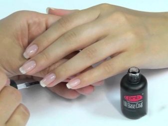 Sau khi hoàn thành việc thực hiện tất cả các hoạt động trên, bạn phải bắt đầu áp dụng cơ sở. Chất không màu này cho phép không chỉ làm cho lớp phủ bền hơn mà còn bảo vệ móng khỏi bị lỏng và ố vàng. Chọn cơ sở có các hoạt chất sinh học bao gồm hoặc với các thành phần chăm sóc.