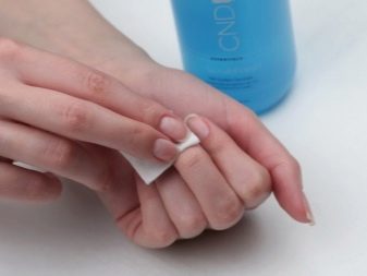 Trước khi áp dụng vecni gel, không cần thiết phải rửa móng tay bằng đệm. Điều này chỉ nên được thực hiện nếu móng quá nhiều phân tầng. Trong các tình huống khác, xử lý móng tay của bạn bằng một tập tin móng mềm và che bằng chất tẩy nhờn. Để đánh bóng, tốt nhất là sử dụng vải không có xơ. Hãy chú ý đến cạnh của móng, vì chỉ cần nó bắt đầu tách gel. Nó không còn có thể chạm vào móng tay phải điều trị buff. Vào cuối giai đoạn này, móng tay được xử lý bằng chất tẩy nhờn.