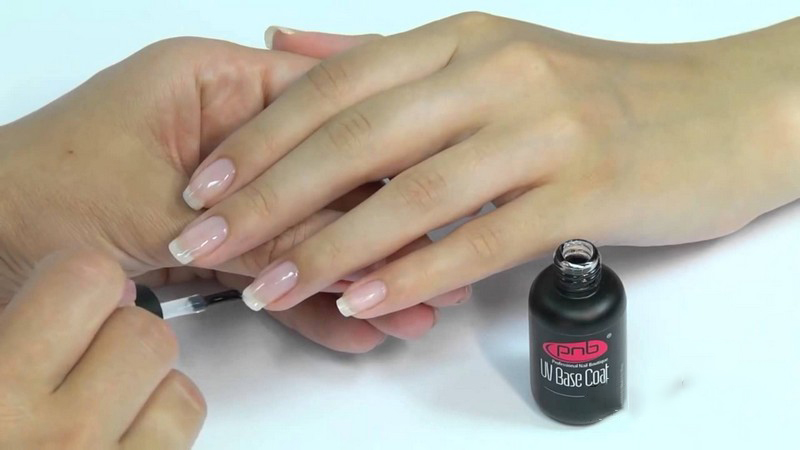 Độ dày của đế nên cực kỳ nhỏ. Để làm khô cơ sở là cần thiết trong một đèn chuyên dụng. Các lớp dính nhất thiết phải được loại bỏ. Các cơ sở chống lại sự xâm nhập của enzyme màu trong tấm móng. Tốt nhất nên thử lớp lông nền một chút dưới cạnh nhô ra của móng. Khi móng bị cắt quá ngắn và kích thước của chúng không đủ để bịt kín, điều đó có nghĩa là cần phải mọc móng hoặc đơn giản là không hy vọng vào chất lượng hoàn hảo của việc làm móng.