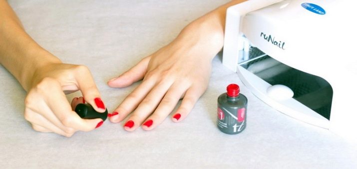- Áp dụng một lớp vecni gel. Nếu chất lỏng dày, thì một lớp sẽ đủ, nếu độ dày không đủ, sẽ cần nhiều lớp phủ hơn. Từng cái khô trong đèn.