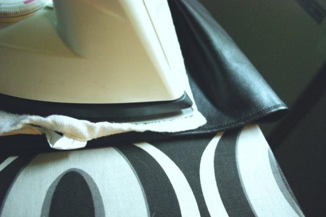 Đầu tiên, khăn được đặt ở phía bên trái của sản phẩm, và sau đó làm mịn giả da cho đến khi các uốn cong biến mất hoàn toàn.