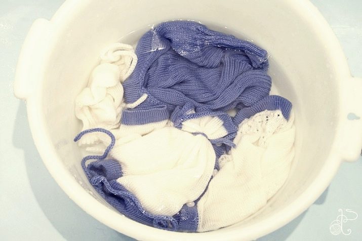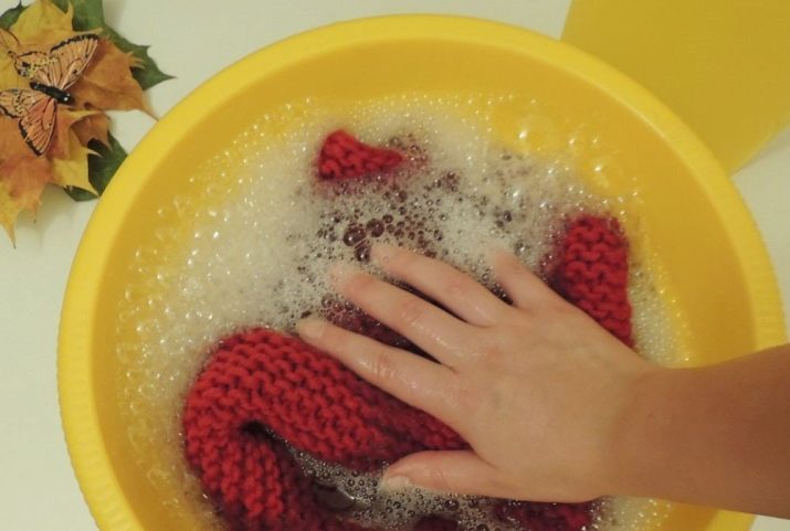 Loại bỏ bất kỳ vết bẩn trên sản phẩm dệt kim xảy ra trước khi giặt chính. Để làm điều này, bạn cần ngâm trong nước ấm (khoảng 30 độ) và bôi chất tẩy vết lên bề mặt, ở dạng lỏng hoặc ở dạng xà phòng. Sau đó, bạn có thể rửa đồ vật bằng máy đánh chữ hoặc bằng tay, như bình thường.