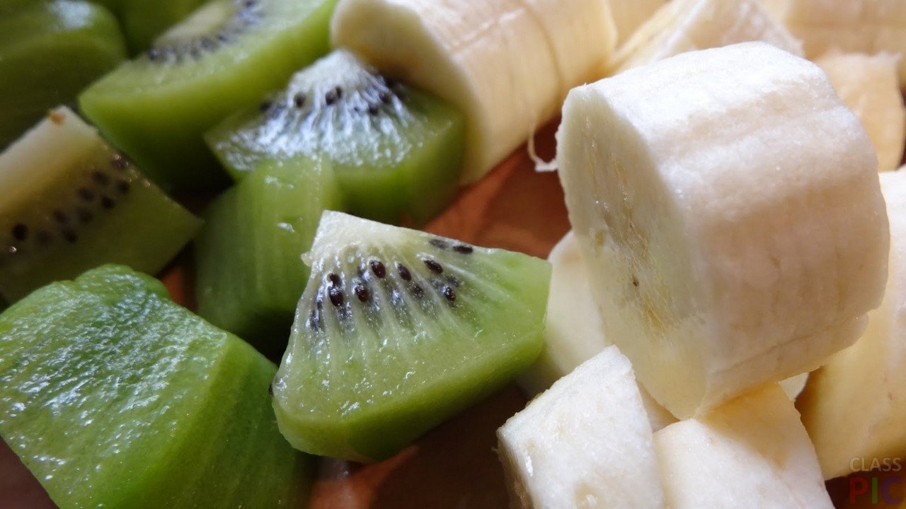 - Kiwi giàu axit trái cây có thể làm mềm lớp hạ bì và làm sạch nó tốt.Để có được kết quả trẻ hóa rõ rệt, chỉ cần một vài thủ tục là đủ. Chuối và kiwi được kết hợp thành những phần bằng nhau, sau đó chất này được thoa lên mặt và giữ không quá một phần ba giờ. Khu vực xung quanh mắt nên được làm sạch.