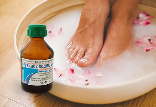 Đối với tất cả những thay đổi khó chịu trên da bàn chân, một dung dịch hydro peroxide tinh khiết trong nước là một công cụ hiệu quả.