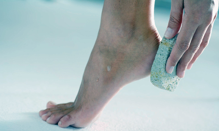 - Đá bọt hoặc bàn chải đặc biệt sẽ loại bỏ da tắm mềm ra khỏi phần bị bệnh của bàn chân.