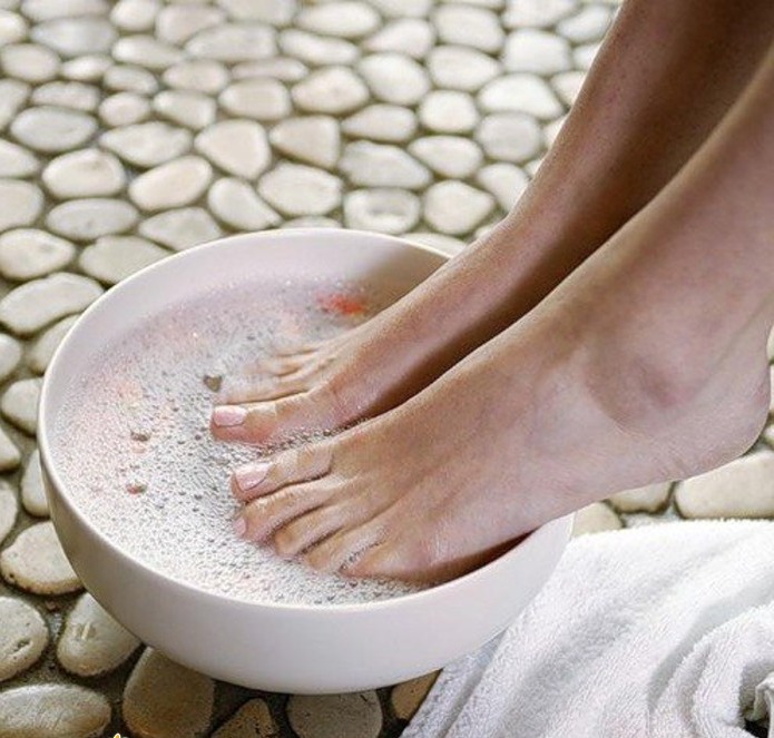 Với việc xông hơi chân sau khi tắm ngâm chân bằng thảo dược, cần phải loại bỏ da chết và điều trị bằng kem làm mềm.