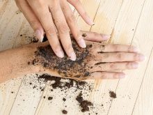 100 g bã cà phê được trộn với xà phòng lỏng và chà xát vào da trong 5 phút10 phút.