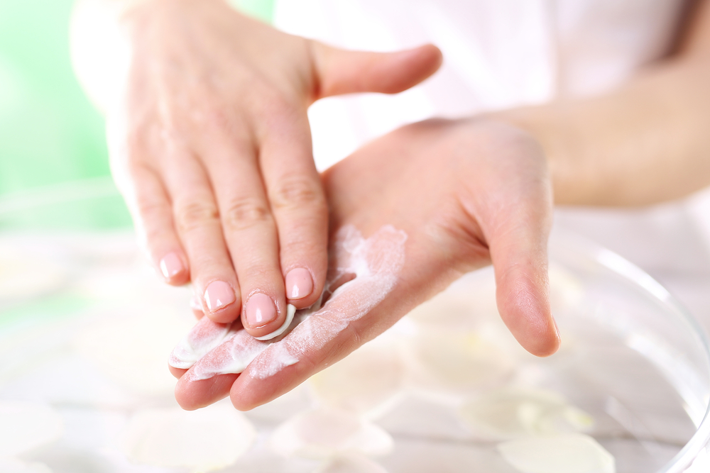 - Sau khi rửa, trải đều tay bằng kem dưỡng.
