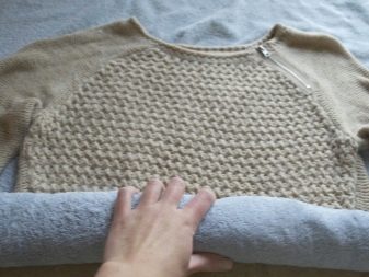 - Đầu tiên, bạn không thể ép mạnh sản phẩm từ len, xoắn nó. Do đó, bạn làm biến dạng nó và kết quả là nó sẽ lại bị hư hỏng. Để vật đã rửa trên giá đỡ hoặc bảng phẳng, không làm thẳng nó, ở dạng nhàu nát. Hãy để chiếc áo len giữ nguyên như thế cho đến khi hết nước.