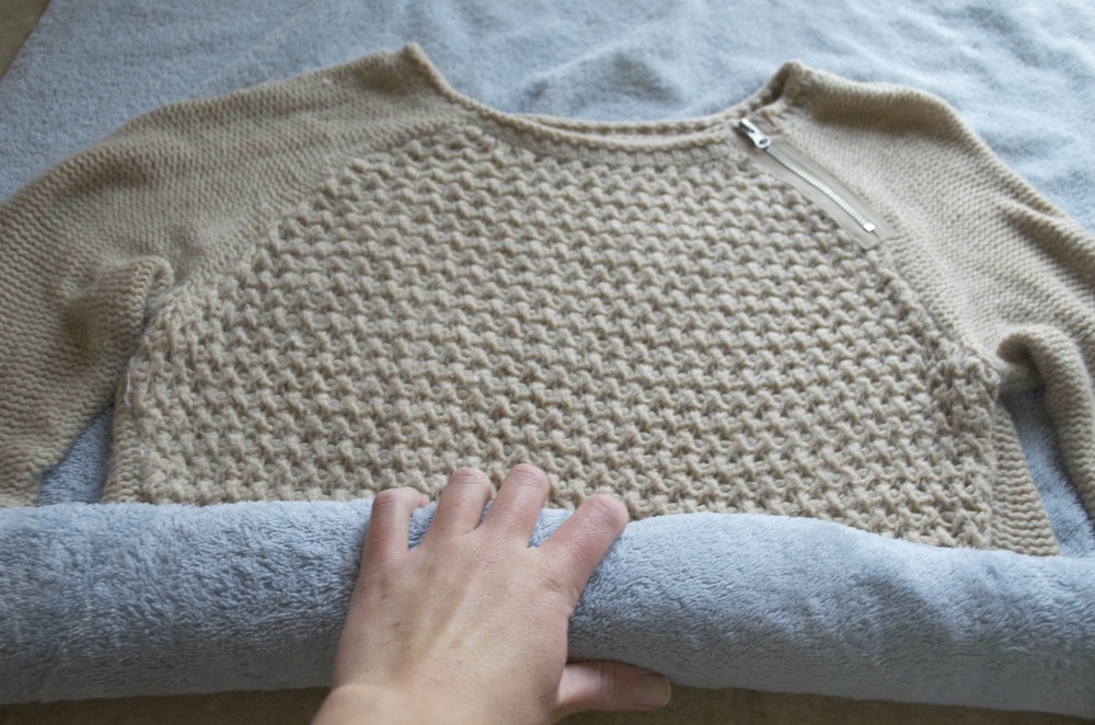 - Thứ ba, để vải len cuối cùng được sấy khô, nó phải được trải ra trên một bề mặt phẳng. Để bắt đầu, chuẩn bị bề mặt, phủ nó bằng một chiếc khăn khô, sạch. Sau đó đặt ra một thứ dệt kim gọn gàng và để nó khô hoàn toàn.
