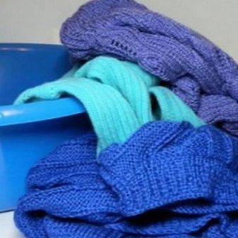 - Những điều tương tự cũng cần được rửa theo một cách đặc biệt. Rửa sạch sản phẩm nhiều lần và cuối cùng thêm giấm (một muỗng canh) vào nước. Vì vậy, bạn có thể khôi phục các chủ đề đã được sử dụng để đan, bên cạnh đó, khôi phục màu sắc của quần áo.