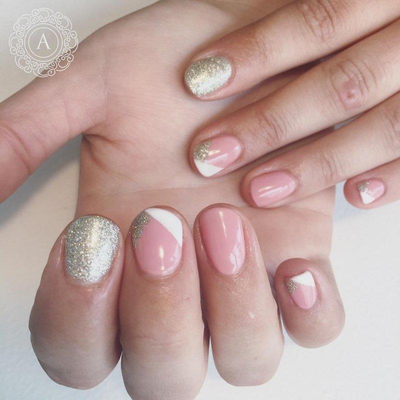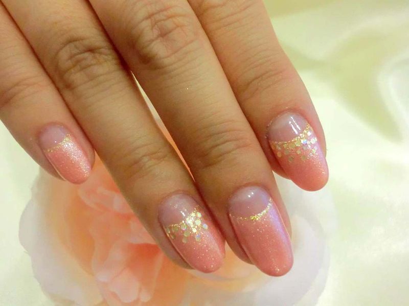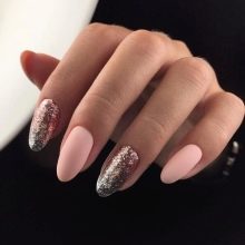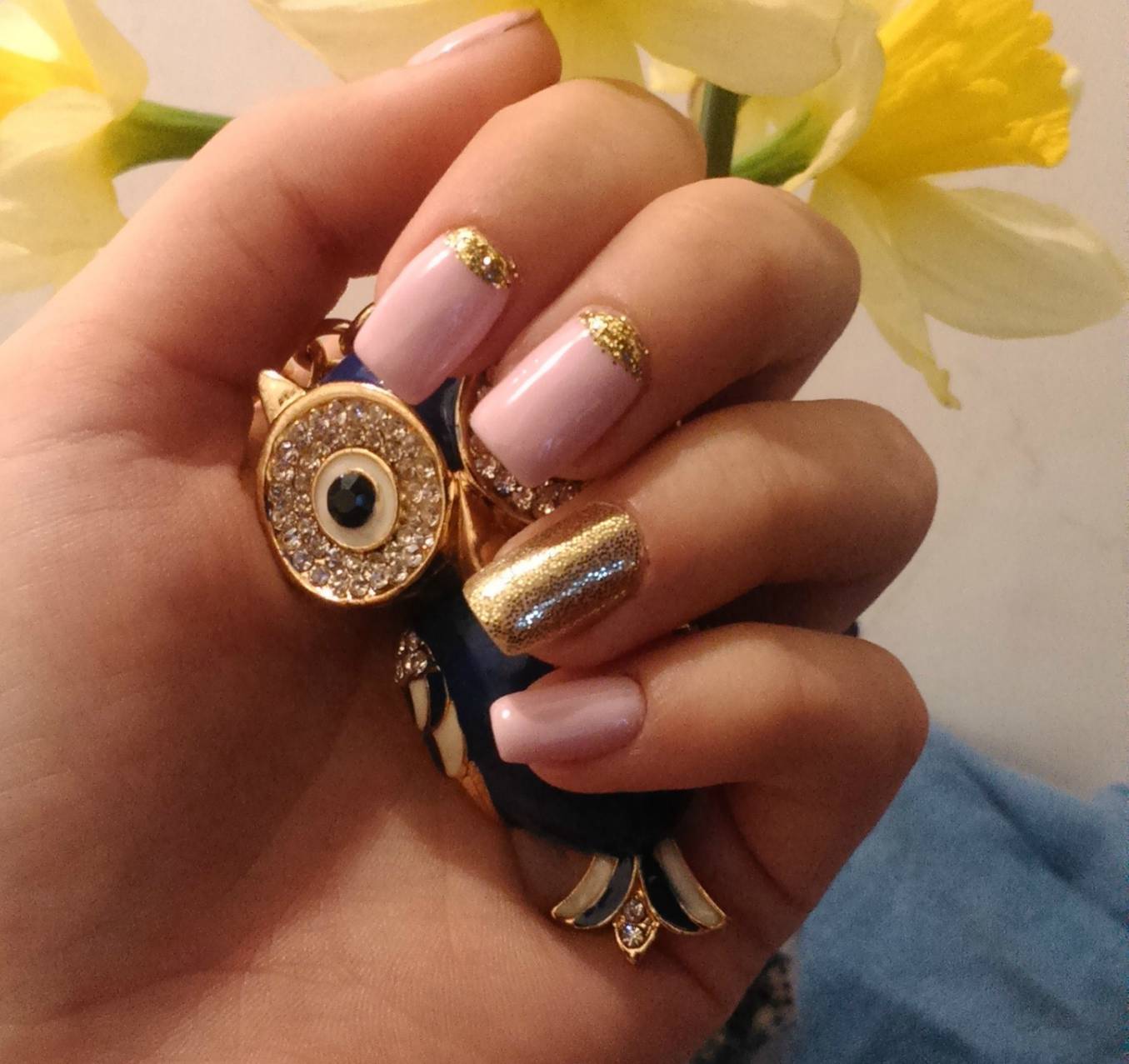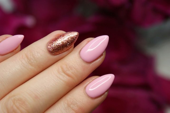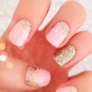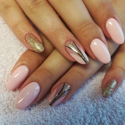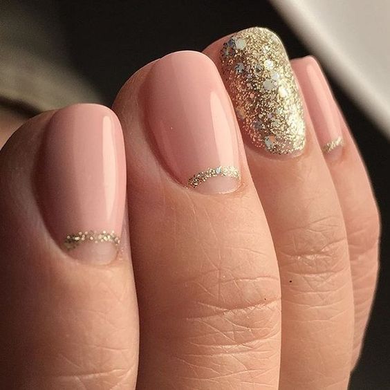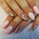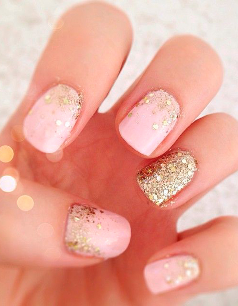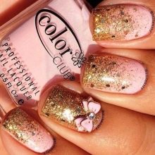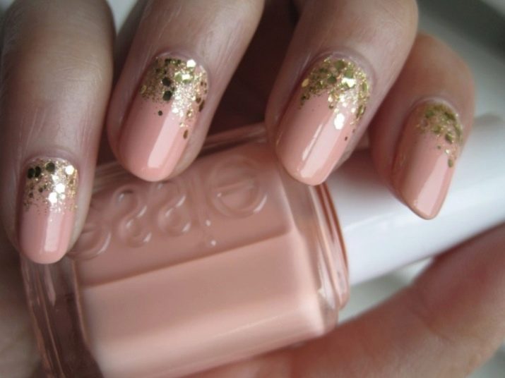 - Long lanh. Đặc biệt có liên quan là việc sử dụng móng tay vàng lấp lánh, bởi vì nó trông sang trọng và đầy màu sắc. Kết hợp với sơn mài màu hồng nhạt, nó làm cho móng tay trang trọng và phong cách. Thông thường nó được sử dụng như là hoàn thiện trong móng tay Pháp hoặc khi thực hiện thiết kế trong kỹ thuật ombre.Với sự trợ giúp của long lanh, bạn có thể tạo ra một bức tranh hoặc một vật trang trí trên toàn bộ bề mặt của tấm móng và nhấn mạnh phần riêng biệt của nó. Nó rất phổ biến trong thiết kế của đá cẩm thạch.