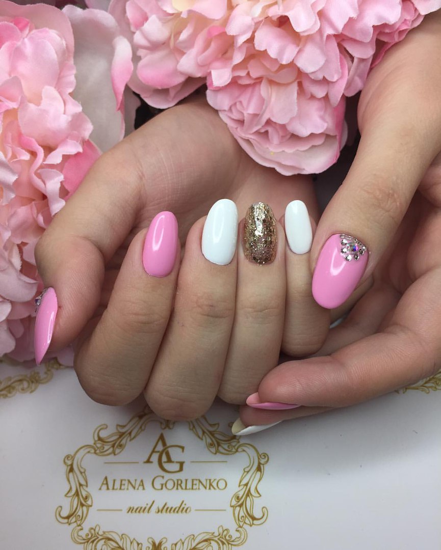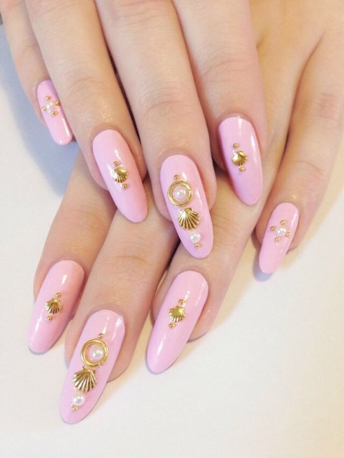 Màu hồng từ lâu đã được coi là nữ tính ban đầu, vì nó có thể làm nổi bật hoàn hảo bản chất mong manh của một cô gái. Trên móng tay, nó trông đặc biệt nữ tính và hấp dẫn, và kết hợp với các yếu tố thiết kế vàng, nó có thể mang lại cho hình ảnh sự thanh lịch hơn nữa.