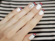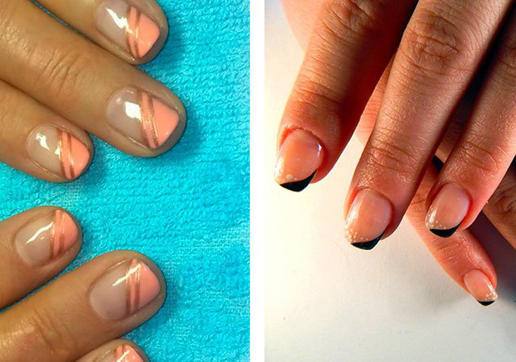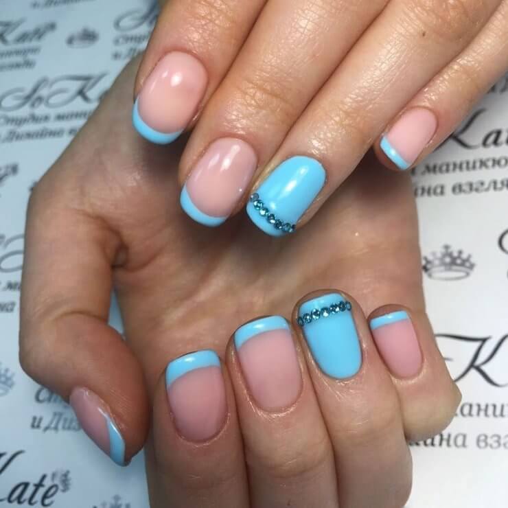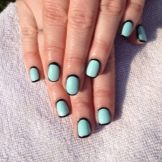- Với móng tay ngắn rộng hài hòa với màu pastel. Bề mặt móng của một màu sắc tinh tế với một cạnh màu sáng đang thịnh hành. Một nụ cười rộng trên một tấm móng ngắn trông thật tệ. Nên ưu tiên cho viền màu hẹp. Một dải có kích thước 2 mm là lý tưởng để tạo ra một nụ cười trên một tấm thu nhỏ.