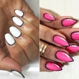 Áo khoác màu làm cho móng tay hình quả hạnh thời trang có chiều dài trung bình. Sự xuất hiện tự nhiên của móng tay ngắn cho hình dạng của một hình vuông mềm mại. Một lớp sơn mài màu đơn sắc bao phủ đầu hoặc lỗ của tấm móng. Toàn bộ bề mặt của móng cho một màu khác nhau. Móng tay hai màu thu hút sự chú ý của người khác bằng vẻ đẹp của họ. Trước khi áp dụng hình ảnh, hai điều kiện phải được đáp ứng: