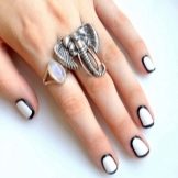- Thiết kế được trang trí với một nền đơn sắc hoặc cầu vồng. Cành, hoa, bướm, cung thường được đặt trên ngón đeo nhẫn.