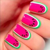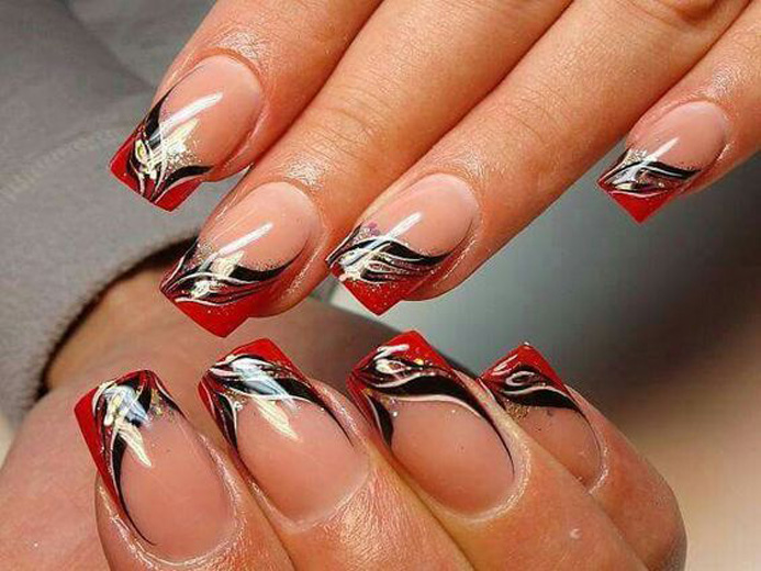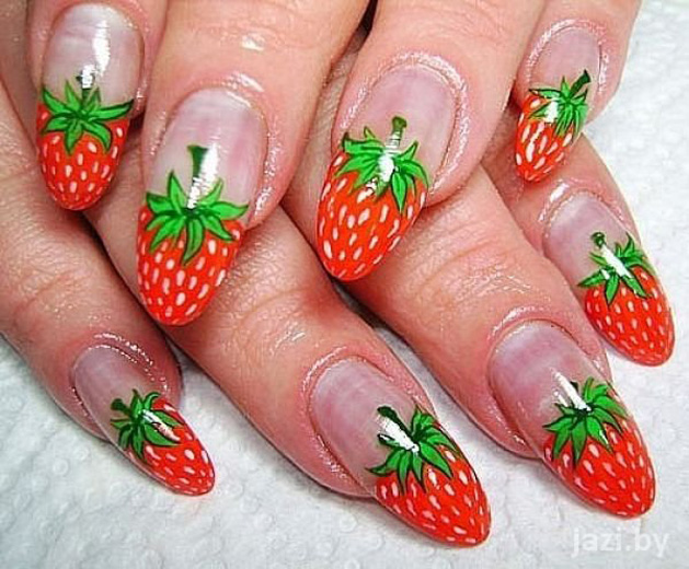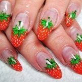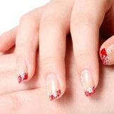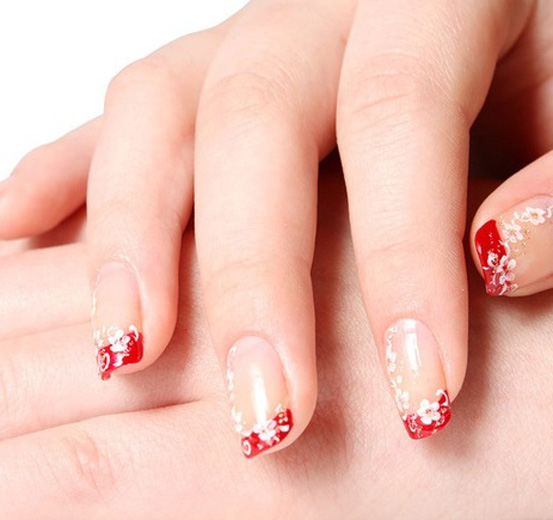 Áo khoác đỏ với hoa văn màu trắng là lý tưởng cho các cô gái trẻ. Trang trí hoa trắng có thể trải dài trên toàn bộ tấm móng. Những cô gái trẻ với thiết kế này có được sự duyên dáng và nữ tính. Một khu vực lớn của nụ cười trên móng tay dài làm cho nó có thể áp dụng một mô hình đẹp khác thường. In cắt dưa hấu ngon ngọt, trái cây, cam quýt, quả mọng cho bề mặt độc đáo và độ sáng. Nấm, hoa, cành cây sẽ là một trang trí tuyệt vời của tấm móng tay.