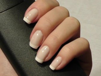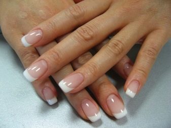 Sau đó, gel sẽ rơi trên bề mặt chặt chẽ và đồng đều. Sẽ không có sự thô ráp trên móng tay. Tiếng Pháp, được thực hiện với sự trợ giúp của shellac, có sức mạnh tuyệt vời. Tính năng này của gel phải được xem xét khi áp dụng một mô hình kỳ lạ. Shellac không chứa tạp chất có hại, vì vậy việc sử dụng nó được phép cho phụ nữ mang thai và cho con bú.