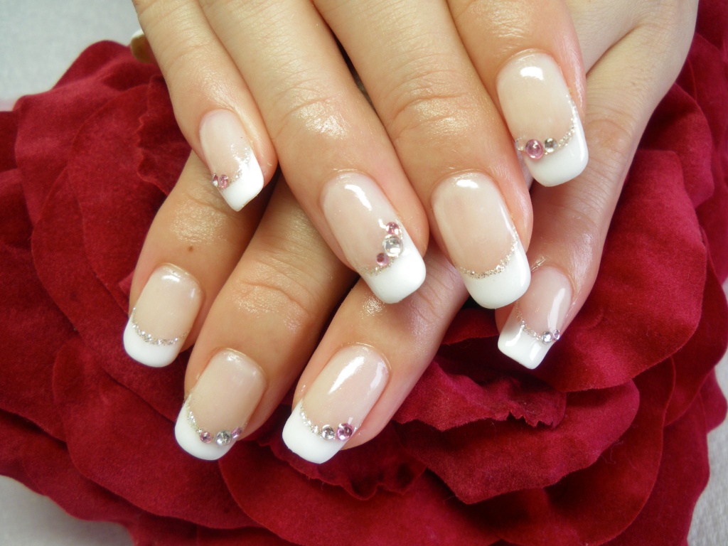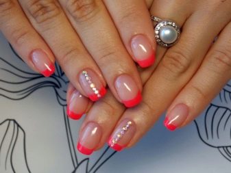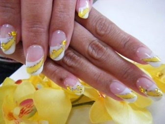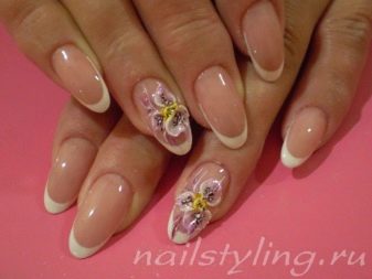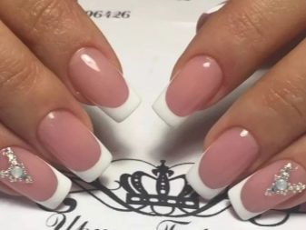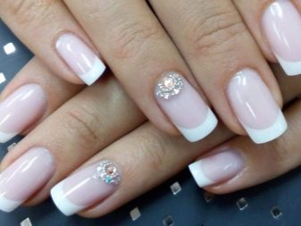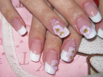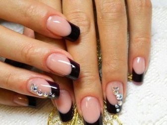 Tuyệt vời sọc bạc và vàng Pháp. Chúng được làm bằng băng kim loại đặc biệt. Các dải trên lỗ và nụ cười thường được nạm kim cương. Tuyệt vời trông nhung mờ Pháp với một nụ cười được xác định rõ ràng. Thông thường, những người mang móng tay như vậy thích một cơ sở màu sắc. Bạn có thể trang trí thiết kế nhung tráng lệ với hoa văn trang nhã. Nó bật ra một bản in sang trọng. Nó thường được rắc bột lấp lánh, chip pha lê, cát acrylic.