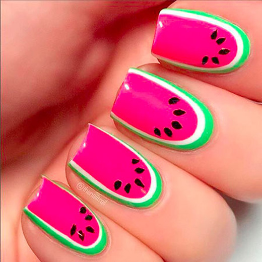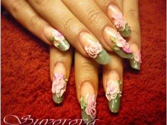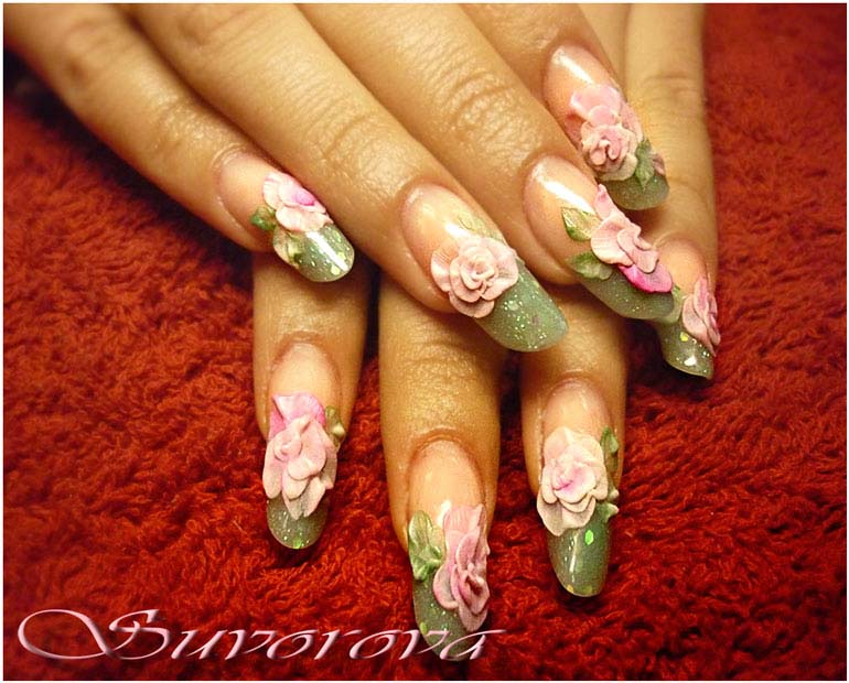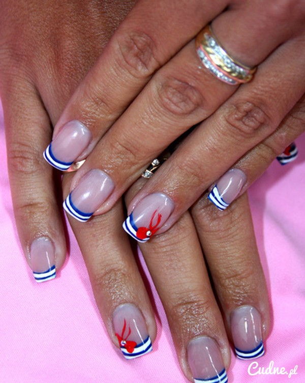 Thiết kế bể cá bao gồm vẽ hoa, cành cây, bướm, bọ rùa và các hình ảnh khác trên đường cười. Từ trên chúng được phủ một lớp gel trong suốt. Trái tim trên đầu móng tay hiện đang ở đỉnh cao của sự nổi tiếng. Mỗi trái tim có màu sắc riêng trên những ngón tay khác nhau. Hình có thể cùng màu.