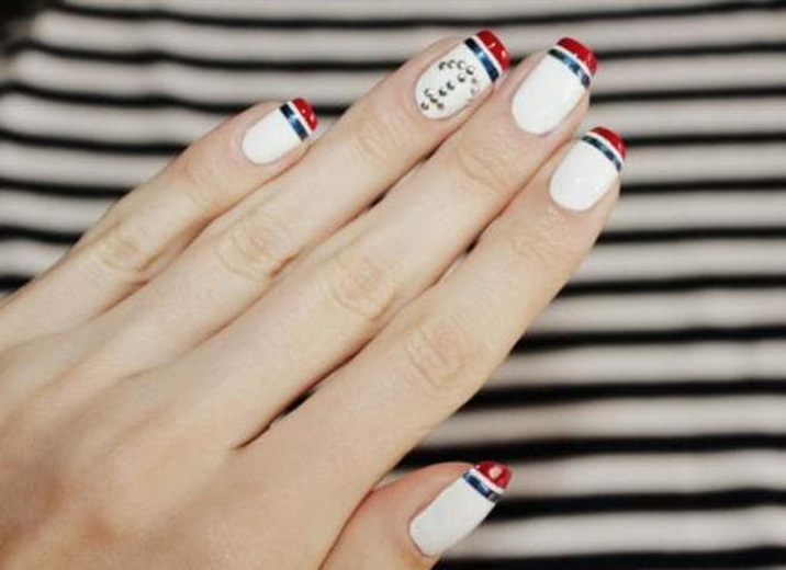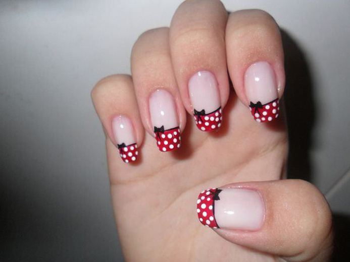 Đậu Hà Lan trắng trên nền đỏ được kết hợp với một yếu tố cùng màu trong quần áo. Làm móng hoàn hảo cho một chiếc váy đỏ. Cũng hài hòa với các vật trang trí màu đỏ, tua rua trên quần áo hoặc bất kỳ phụ kiện nào khác. Các chấm bạc nhấp nháy có thể được đặt trên nền của bất kỳ màu nào.