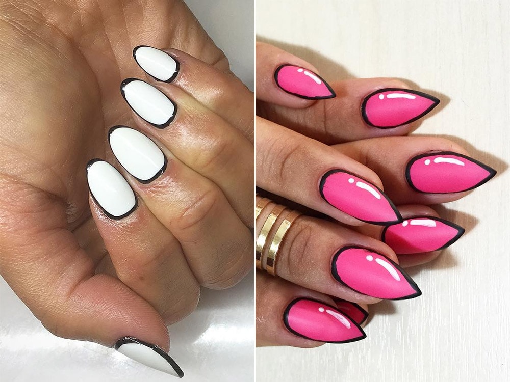 - Làm móng tay ngày nay ở đỉnh cao của sự phổ biến. Một bàn chải mỏng đóng khung móng xung quanh chu vi. Khung có thể được áp dụng trong các đường gãy, nét đứt và lượn sóng. Đôi khi một bản in được đặt trên tấm móng tay.