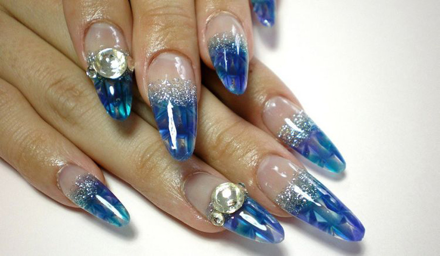 - Áo khoác màu trên móng tay có đính kim cương trông tuyệt đẹp. Đá màu trải trên một đường chéo, vuông góc hoặc với số lượng lớn. Kim cương nhỏ được sử dụng để tạo ra sự chuyển tiếp trơn tru.