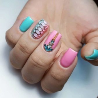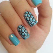 Sự tinh tế đặc biệt mang đến cho các kim cương trang trí thiết kế. Họ có thể tự trang trí vảy hoặc để lại mà không có hình ảnh móng tay da rắn.
