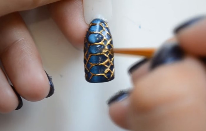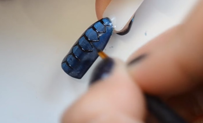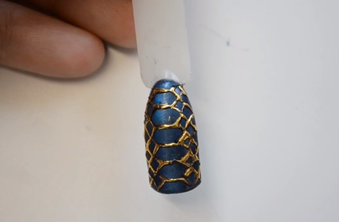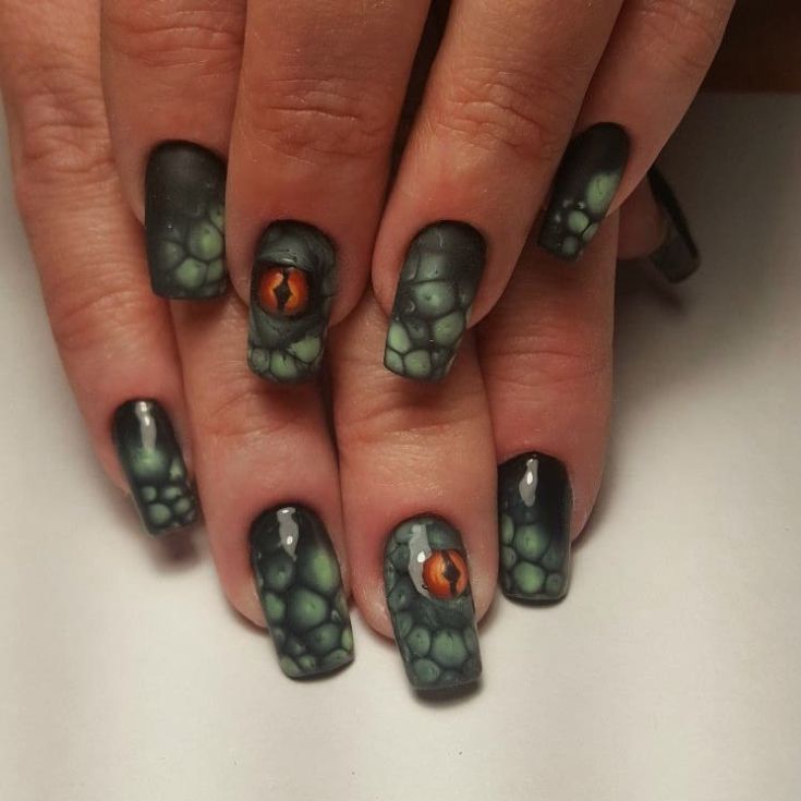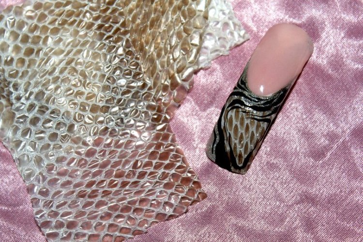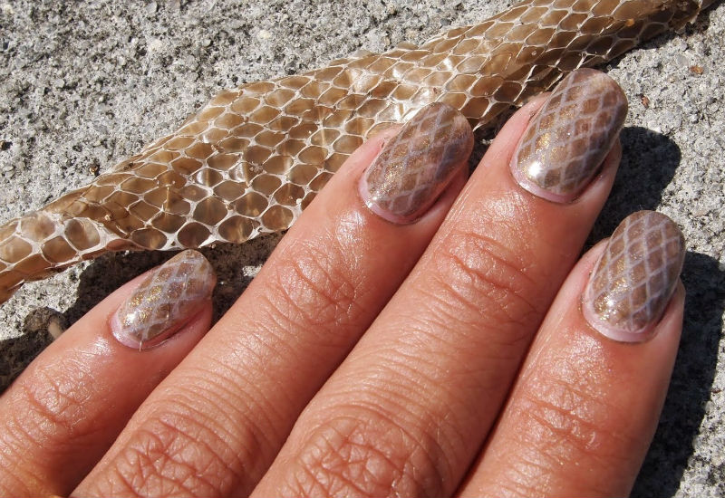 Để tạo móng tay với các loài bò sát thực hành hai loại: giả da rắn trên bề mặt móng và vẽ trực tiếp.