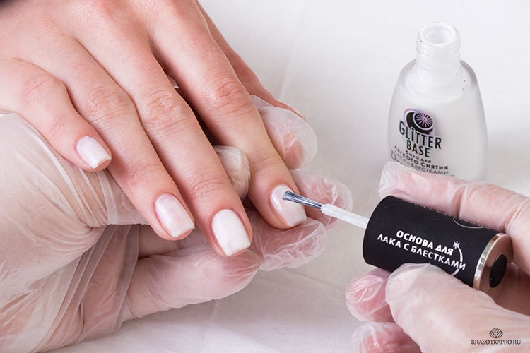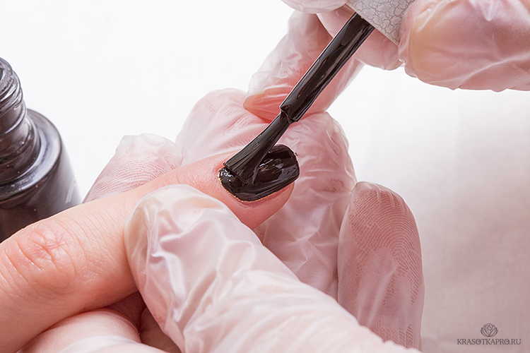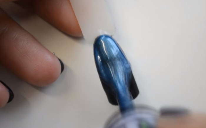 Để tạo ra một khối lượng giả, gel cơ sở được áp dụng đầu tiên. Nó là cần thiết để sử dụng các phương tiện của cấu trúc dày đặc. Sau khi khô, móng được phủ hai lớp sơn mài tối, mỗi lớp được sấy khô trước. Sau đó các sắc tố nhẹ được áp dụng, ngay lập tức che phủ bằng các giọt fixer.