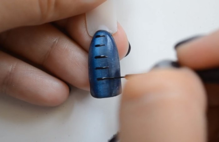 Vẽ móng nghệ thuật đòi hỏi rất nhiều kiên nhẫn. Cần phải vẽ từng thang đo, vì vậy nên lấy một hoặc hai ngón tay trên bàn tay để làm việc.