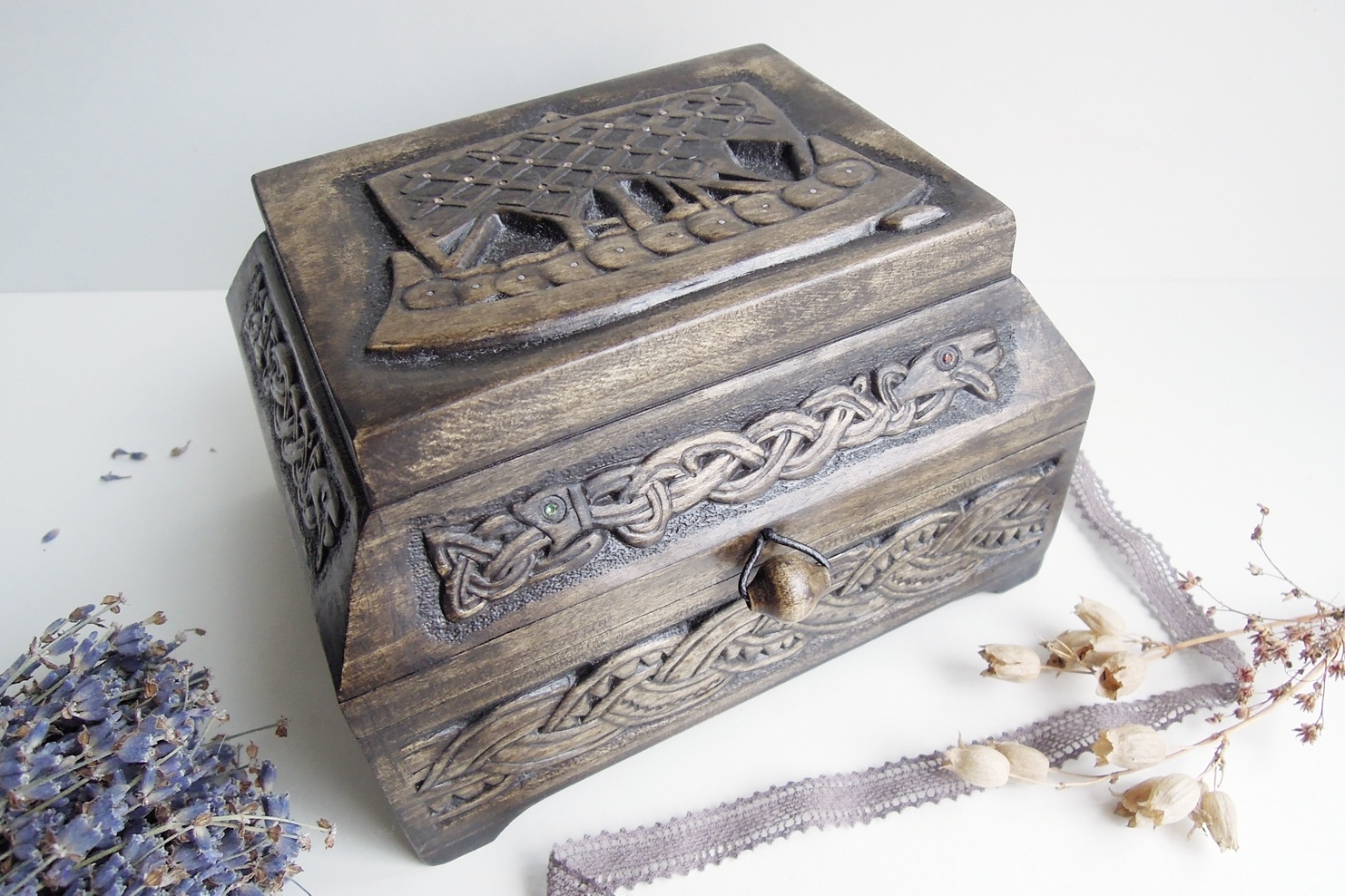 - Hộp khắc hoặc giỏ. Trong các mặt hàng như vậy thường lưu trữ những thứ cho may vá. Ngoài ra, họ sẽ có thể trang trí nội thất của căn phòng.