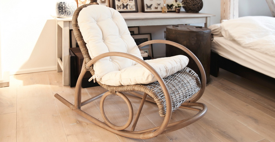 - Ghế bập bênh. Một mảnh nội thất như vậy là hoàn hảo để ở trong đó khi xem TV hoặc tham gia vào việc may vá.
