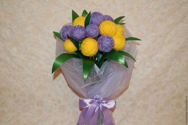 - Bộ thủ công mỹ nghệ. Nhiều phụ nữ ở độ tuổi đó thích may vá và đan. Để làm cho món quà không nhàm chán, bạn có thể làm một bó hoa gồm những quả bóng gồm các sợi có màu khác nhau. Và cũng trong bó hoa này chèn một số nụ lớn mới cắt. Tất cả điều này được gói trong một gói đẹp và buộc bằng một chiếc nơ lớn.