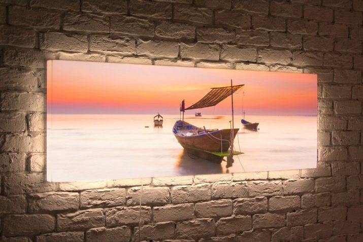 - Những bức tranh được chiếu sáng. Hầu hết thường chọn hình ảnh của phong cảnh hoặc đơn giản là chân dung đẹp. Một yếu tố như vậy sẽ có thể trang trí hầu hết các phòng nội thất.