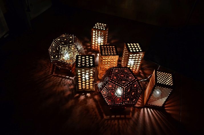 - Đèn sàn Đèn sàn openwork đẹp cũng sẽ có thể trang trí phòng của cô gái sinh nhật. Dưới ánh sáng của một sản phẩm như vậy, bạn có thể đọc sách vào buổi tối.