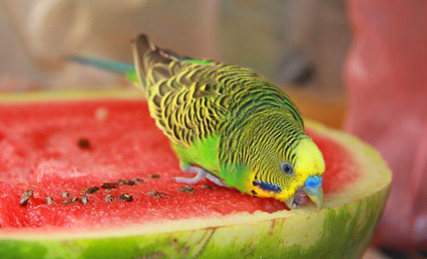 - Dưa hấu - giàu kali và magiê, làm sạch cơ thể và, tất nhiên, hữu ích cho hệ thống tiết niệu của chim. Sử dụng đúng cách - cắt thành lát nhỏ.